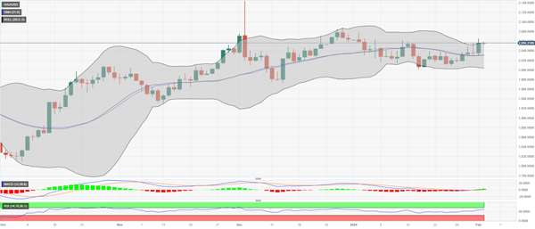 另一方面,2,042-2,040 美元的强劲水平阻力断点现在似乎可以保护 50 日简单移动平均线 (SMA) 之前的直接下行空间,该平均线目前固定在 2,033-2,032 美元区域附近。令人信服地跌破后者可能会将金价拖至 2,012-2,010 美元区域,并最终触及 2,000 美元心理关口。如果未能守住上述支撑位,可能会导致偏向看跌交易者,并暴露 1982 美元区域附近的 100 日移动平均线支撑,然后 XAU/USD 会跌至非常重要的 200 日移动平均线(靠近 1,965 美元区域)。