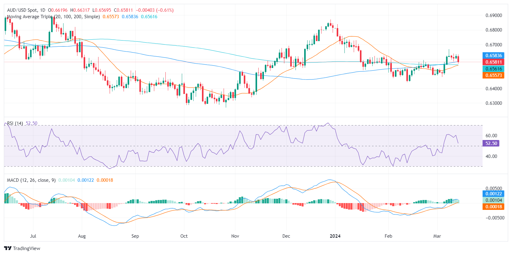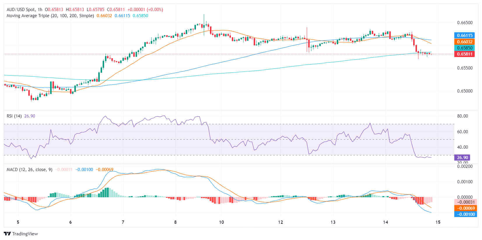 澳元/美元货币对目前交易于 0.6583,表明明显且强劲的下滑。无论眼前的抛售压力如何,广泛的技术前景表明买家对该货币对保持着巨大的控制力。小时图显示短期看跌势头增强,但在指标进入超卖区域后,抛售动力可能会失去动力。