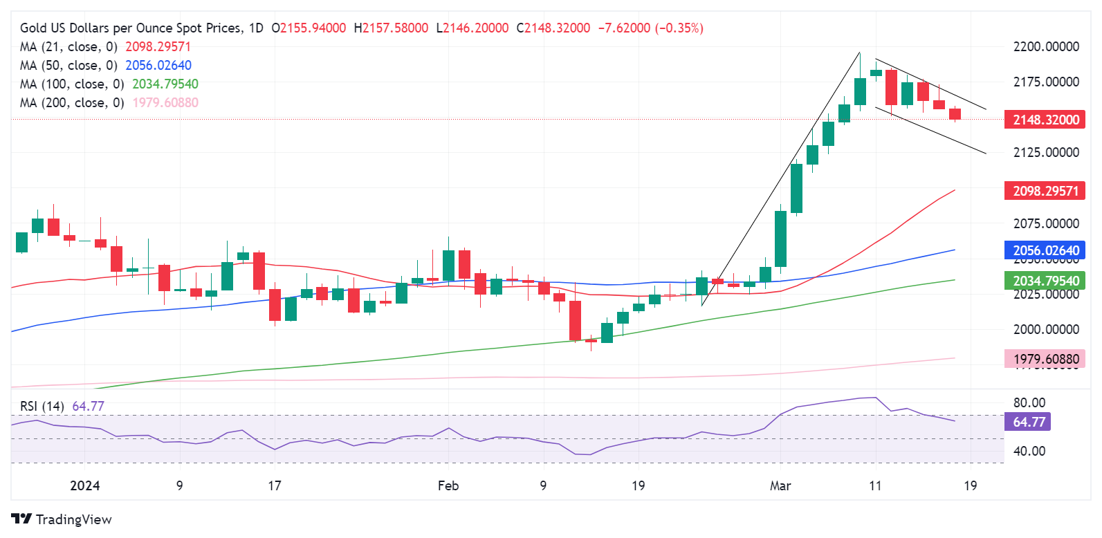 周一早些时候,金价跌至 2,150 美元以下的周低点。