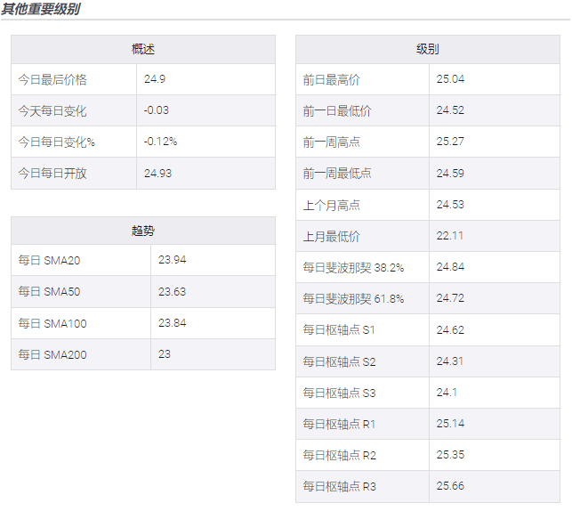 如果白银价格在 24.55 美元以上仍然看跌,则 24.25 美元左右的每周底部将成为白银买家的最后防御。
