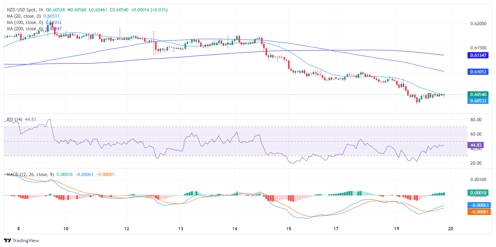 纽元/美元汇率下跌 0.54%,周二交易中跌向 0.6050。盘中早些时候,小时图上的指标达到超卖状态,在亚洲时段之前,该货币对似乎正在盘整