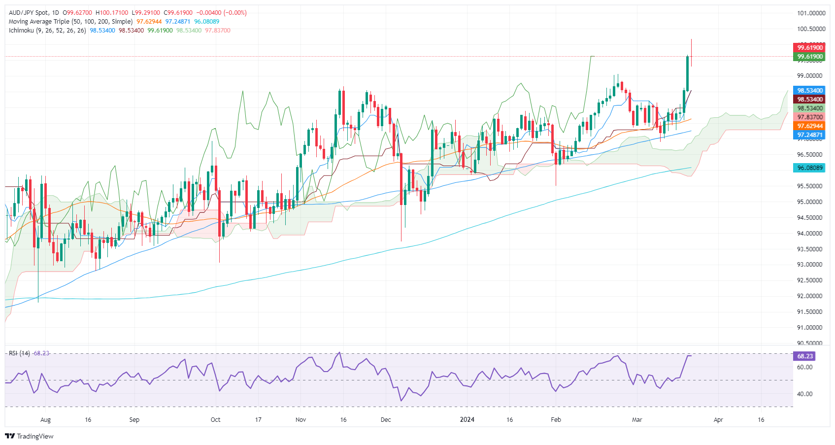 澳元/日元价格分析:在 100.00 附近挣扎,回落但上升趋势保持不变