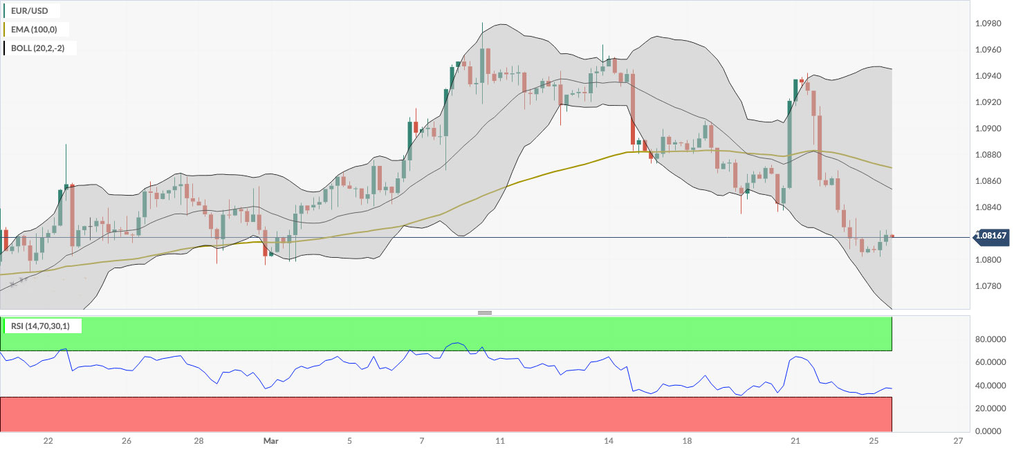 主要货币对的初始支撑位位于 3 月 22 日低点附近,整数为 1.0800。再往南,下一个竞争水平位于布林线下限 1.0762 附近。突破该水平将跌至2月16日低点1.0732,随后汇合2月低点和心理水平1.0700。