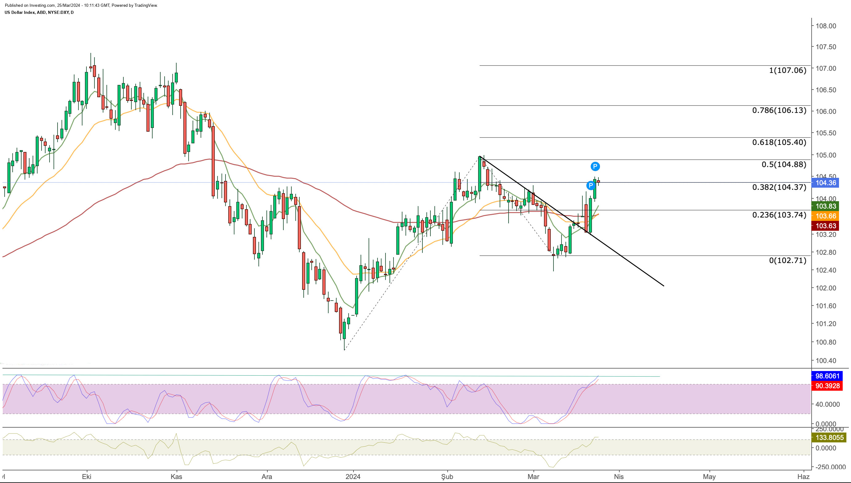 因此,美元指数本周收盘于 104 区域,目前技术上也高于关键阻力位。
