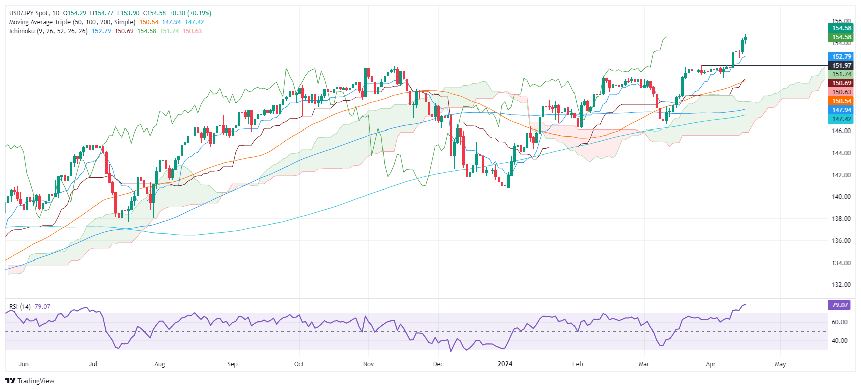 在强劲的零售销售数据和鹰派的美联储评论下,美元/日元突破154.00