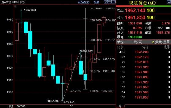 周四(7月13日),国际金价在弱势美元的支撑下升至6月16日以来新高1962.61美元/盎司,隔夜公布的美国6月通胀数据引发了人们对美联储将很快停止收紧货币政策的希望。金价后市上看1970美元。